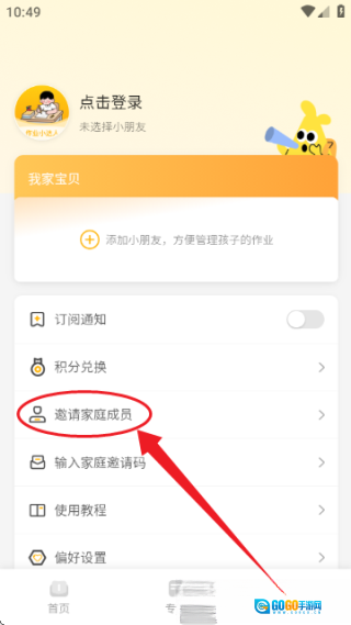 家长可通过进入“我的 - 邀请家庭成员”页面,生成4位邀请码来邀请其他家人加入。
