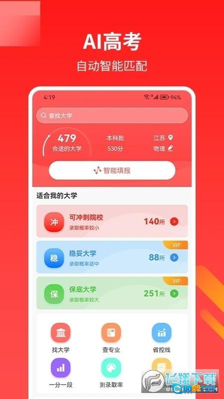 这里有大量高考相关的搜索数据,也提供院校列表,系统能依据你的成绩自动为你推荐适配的学校和院校。