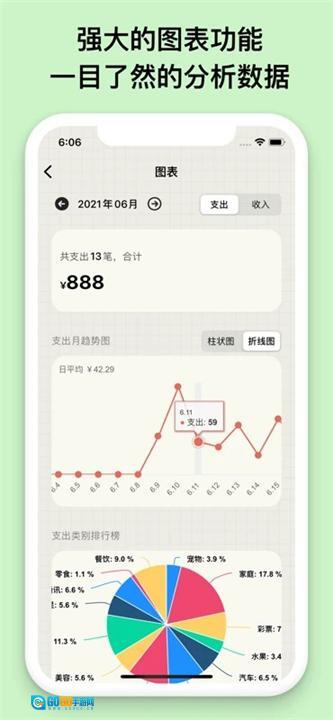 可以在柱状图和折线图之间切换,以便直观地了解自己的消费行为和趋势。