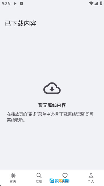 5、查看已下载内容:进入“已下载内容”页面,可对离线播客资源进行管理(当前暂无相关内容);