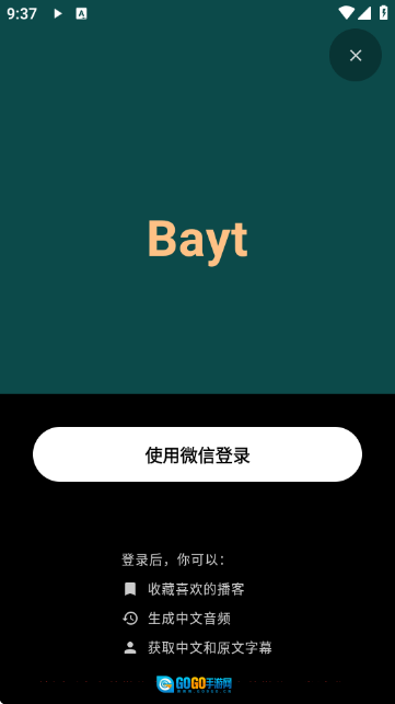7、完成账号登录:选择“使用微信登录”,完成账号登录以使用收藏、生成字幕等功能。
