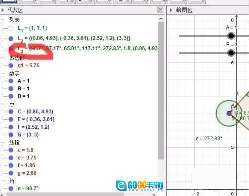 5、按下enter键,在代数区就能看到由这些对象组成的新系列L2。