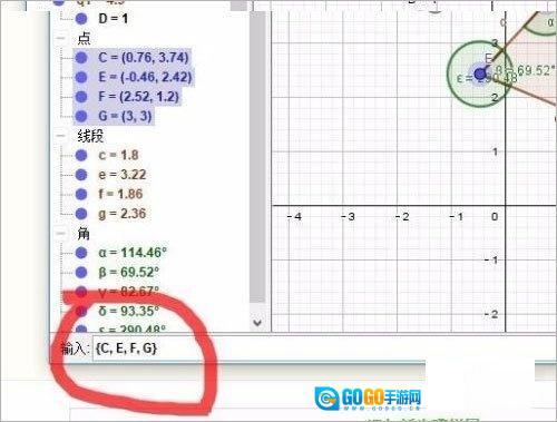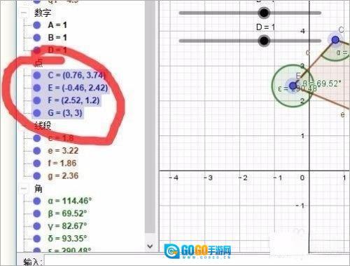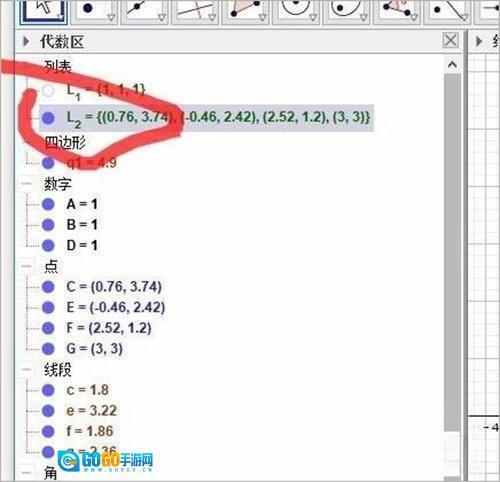 3、当我们需要对已绘制完成的图形里的一组对象进行统一操作时,列表功能同样适用。在代数区,按住shift键或ctrl键,依次选中要组成序列的对象即可。