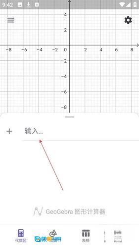 1、在GeoGebra图形计算器的首页,找到并点击【输入】按钮,以此激活输入框。