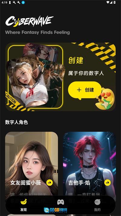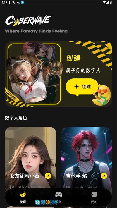 在发现页面,能看到各式各样的AI角色,也可点击顶部创建属于自己的数字人。