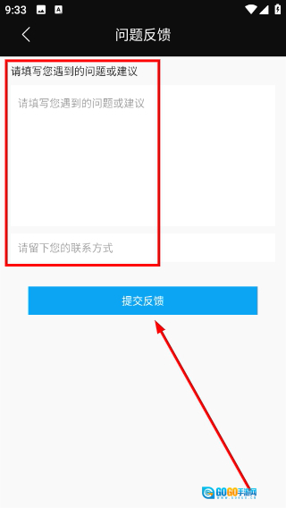3、填写遇到的问题、建议以及联系方式,点击“提交反馈”按钮,即可完成意见提交。