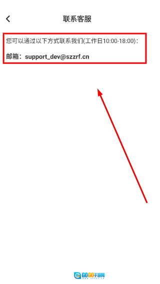 4、可查看工作时间以及客服邮箱(support_dev@szzrf.cn),您可以通过此邮箱与客服取得联系。