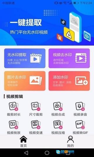 1、首页整合了无水印提取、视频去水印、图片去水印、添加水印等水印相关功能,同时也包含视频剪辑功能。