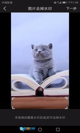 2、在图片去水印页面里选定要去除水印的区域,接着点击下一步;