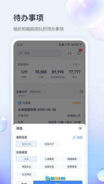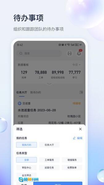 面向大物业行业,提供覆盖全场景的移动管理工具。秉持“管理任务化、服务任务化”的理念,为大物业移动办公场景打造清晰的任务清单体系,助力相关人员有据可依、有序推进各项工作