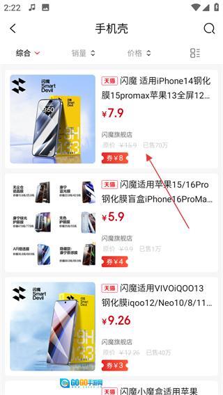 在手机壳的商品列表页面里,挑选出你心仪的手机壳商品,接着进入该商品的详情页面。