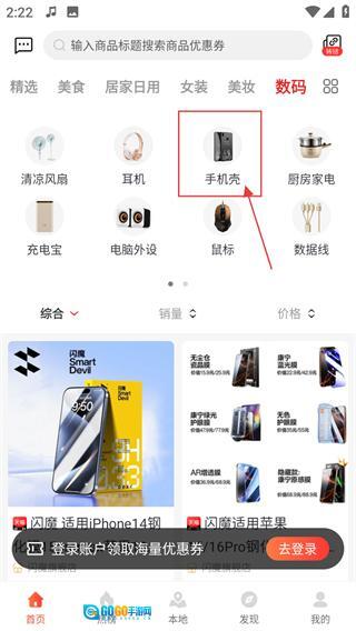在数码分类页面中,点击“手机壳”选项,即可进入手机壳的商品列表页面。