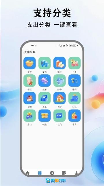 2、在分类页面,您可以浏览各类不同的分类选项,按照具体分类记录每一笔支出,同时也能查看该分类下的详细支出情况。