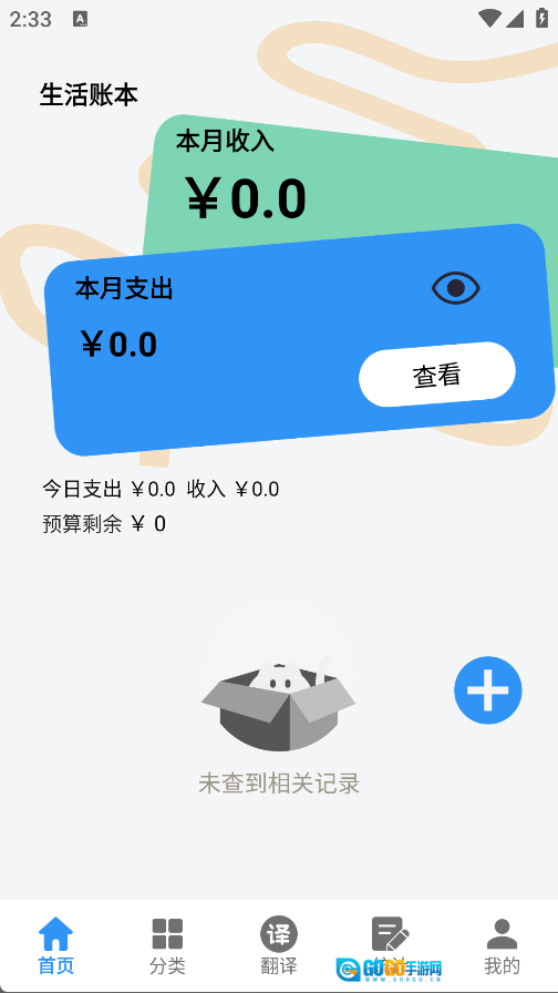 1、首页可查看本月收入、本月支出及今日支出信息,也能通过点击“+”号添加收入或支出记录;