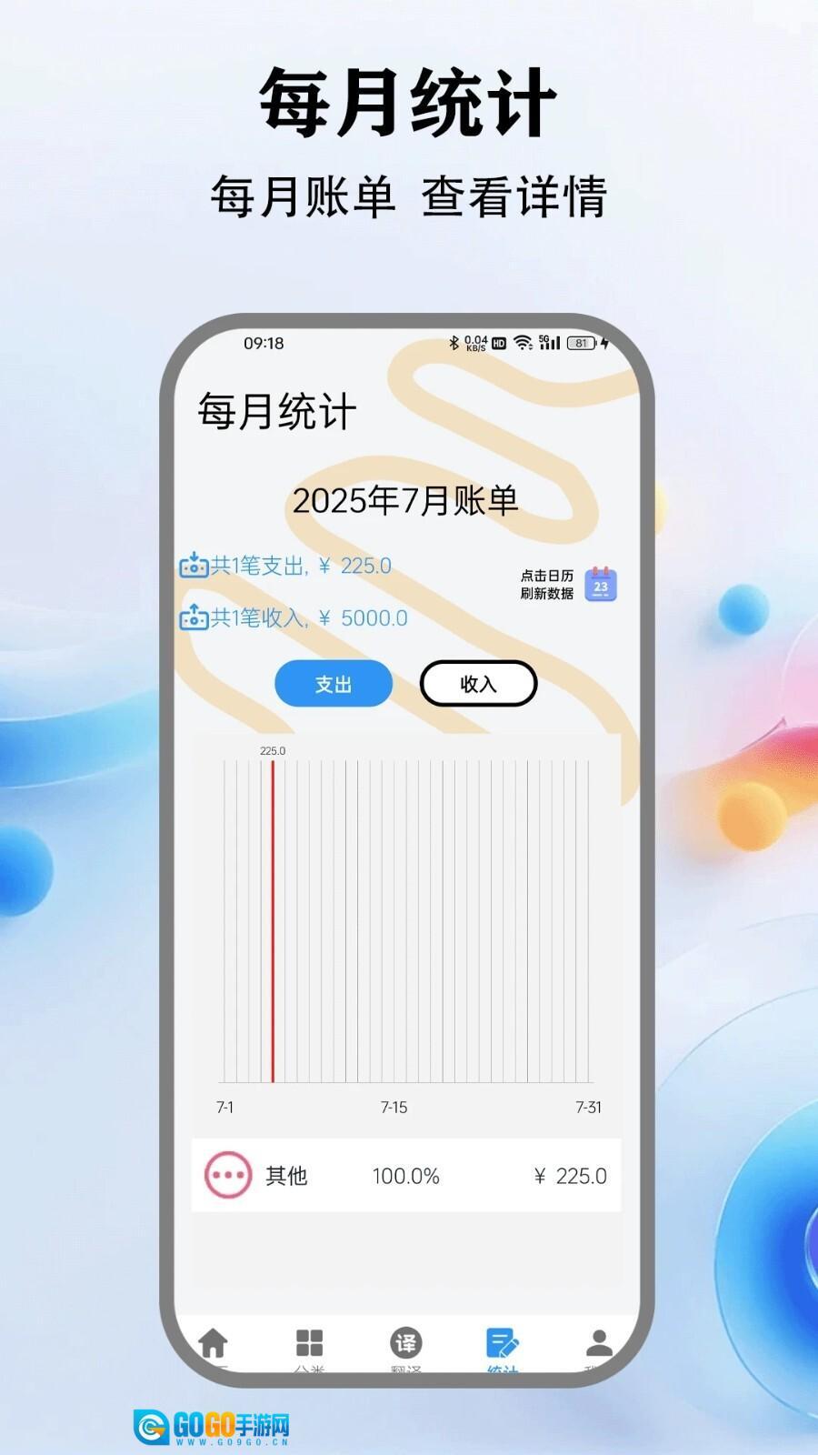 2、支持对支出进行分类管理,餐饮、交通、购物等各类支出清晰明了。