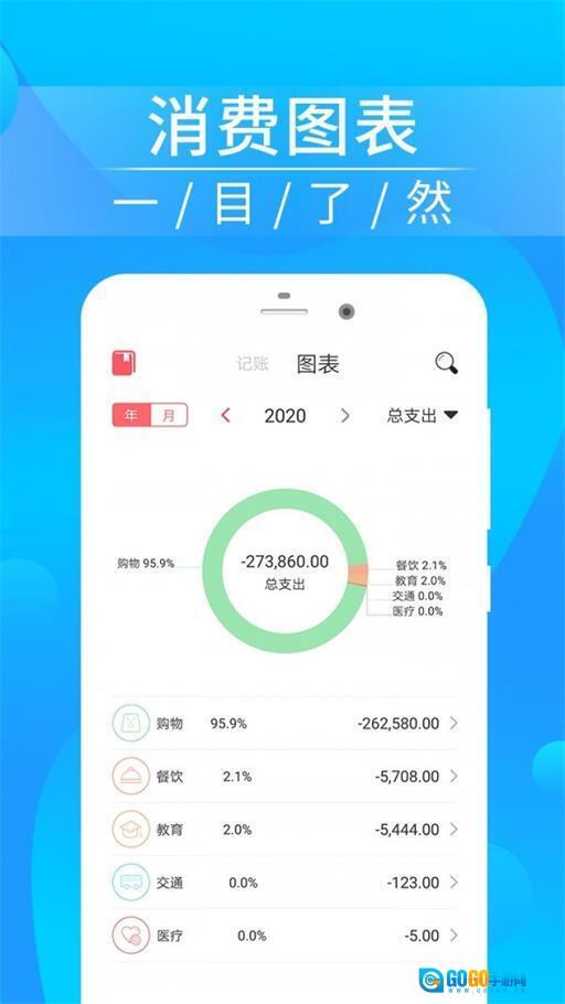 智能统计图表可直观清晰地呈现用户的收入、支出、存款等财务状况,助力用户快速了解自身财务情况。