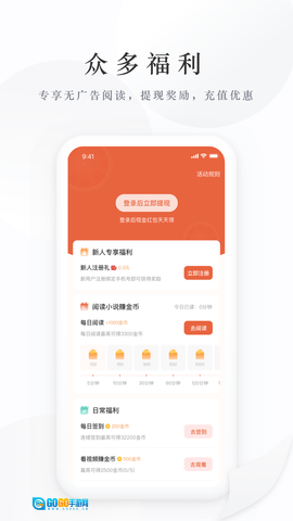 福利中心整合了签到、阅读时长兑换等多种奖励方式,以此增强用户的参与体验。