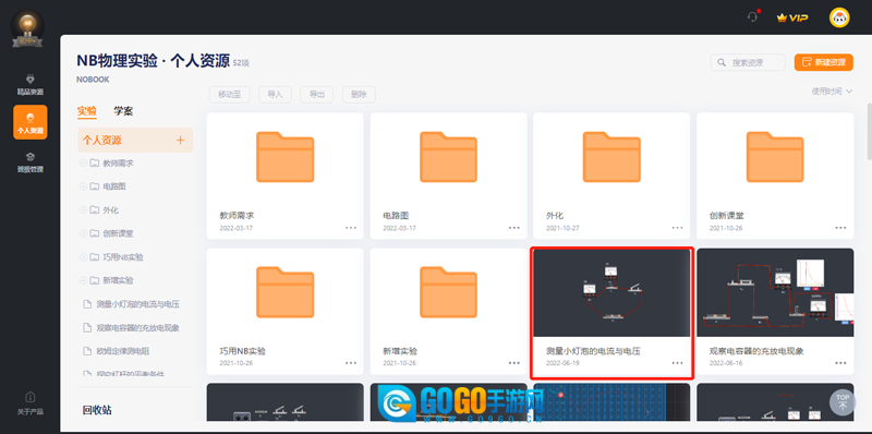 5、退出实验后会自动跳转至左侧的个人资源页面,在该页面中就能查看刚刚保存好的实验。