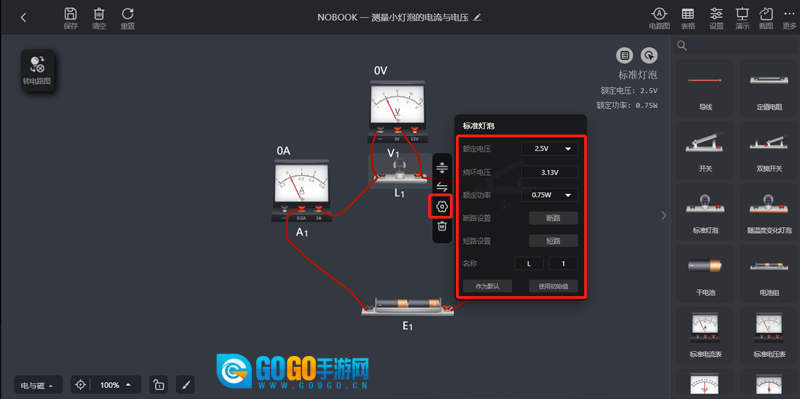 2、按照实际需求从右侧器材栏中挑选所需器材,就能开展组装操作与探究活动。