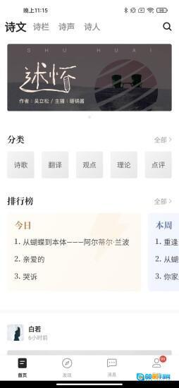 4、增加“收藏诗栏”功能,用户可将喜爱的诗栏添加至收藏列表,便于随时查看诗栏内的内容。