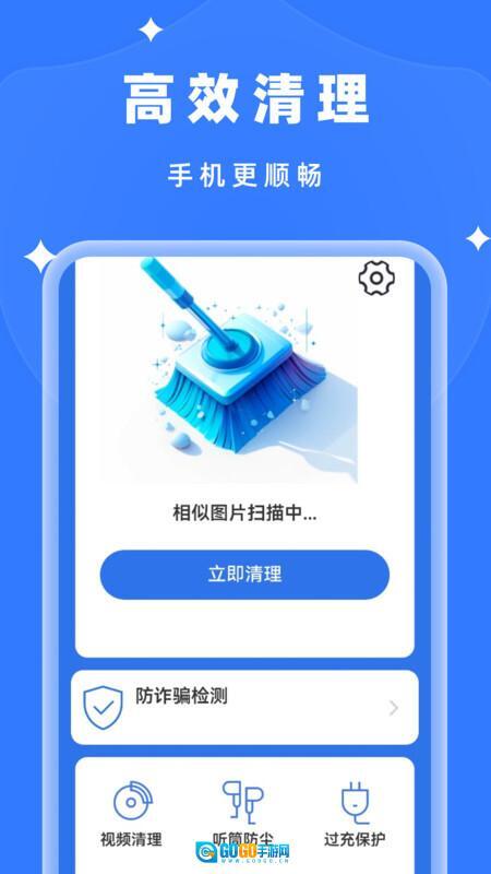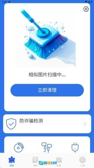 1、安装完成后进入首页,你会看到清理等功能选项,这些功能可以帮助避免手机存储中出现相似图片。
