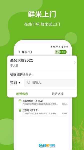 ◆附近有社区运营模式覆盖的用户,能够查看周边最近的各类分售点,直接前往门店还能更快捷地完成米类商品的购买流程。