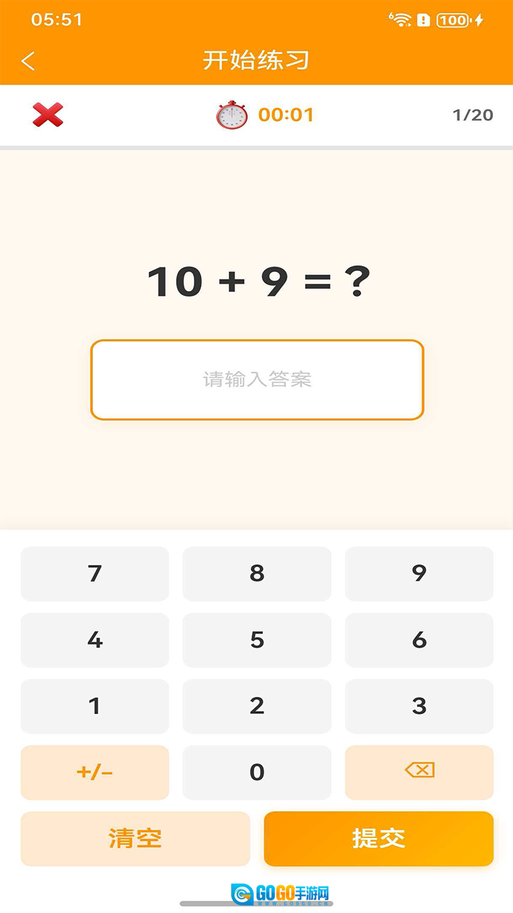 1、进入练习界面后,借助数字键盘输入答案来完成口算题目的练习,系统还配备了计时功能,以此增强练习时的紧迫感。