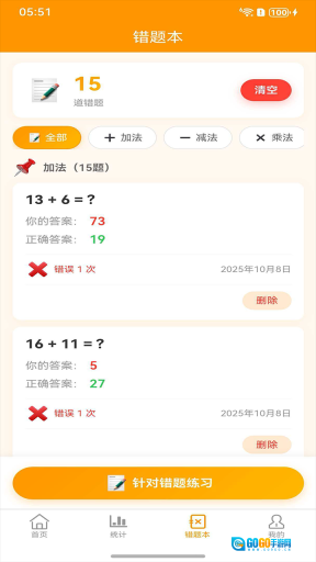 2、借助统计分析与错题本功能,为用户呈现详尽的练习反馈,帮助用户持续增强口算能力。