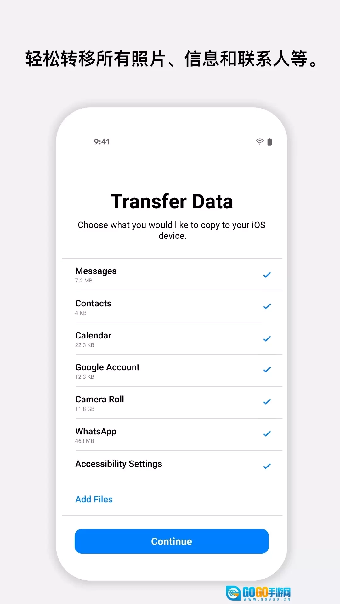 和传统数据线传输的方式比起来,“转移到iOS”借助无线传输,让数据迁移的流程得到了大幅简化。