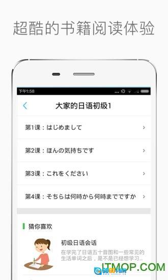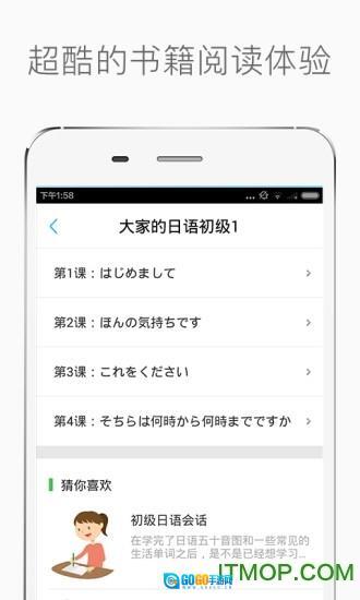 1、超棒的书籍阅读学习感受,搭配核心词汇、细致解析、课程配套练习题,还能灵活调整字体显示、设置顺序(循环)播放模式,助你在手机上轻松搞定经典日语教程的学习。