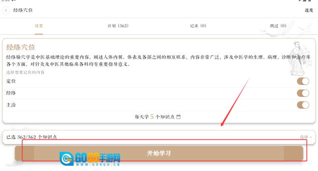 2、点击经络穴位,根据选项选择后即可查看具体内容,便于学习。