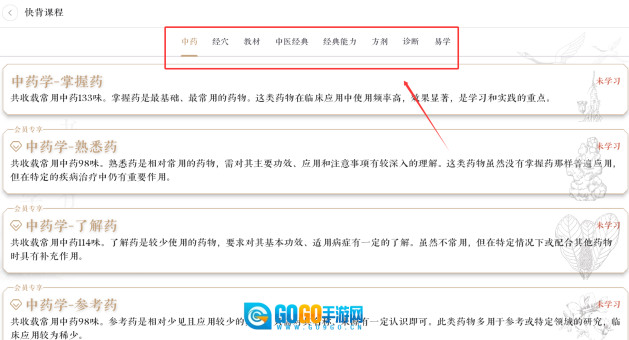 1、首创歌诀记忆法,把难以记忆的药材功效、方剂组成转化为顺口易记的口诀,结合节奏辅助记忆,能有效降低背诵难度,增加学习的趣味性。