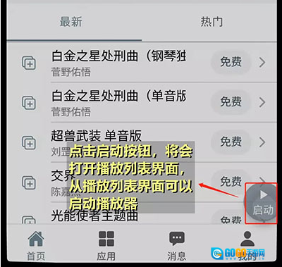 3、添加好歌曲后,点击软件右下角的“启动”按钮,即可进入播放列表界面。