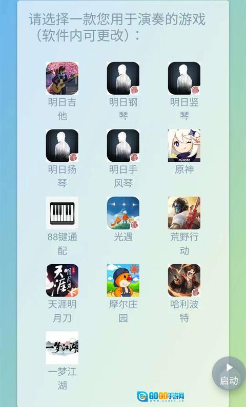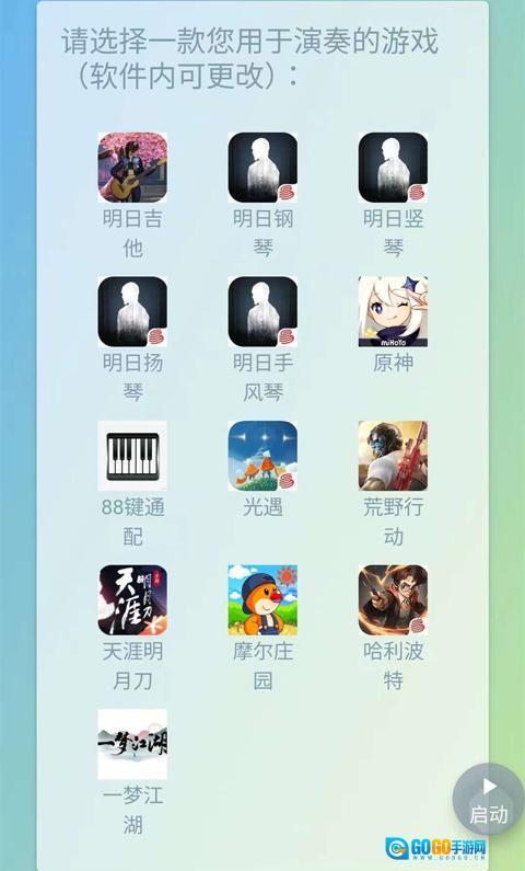 1、首次启动软件时,挑选我们用来进行演奏的游戏乐器(之后能够修改)。