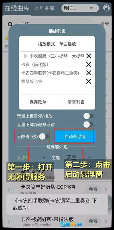 5、进入游戏内的演奏界面后,点击悬浮窗上的播放按钮,就能启动自动演奏功能。