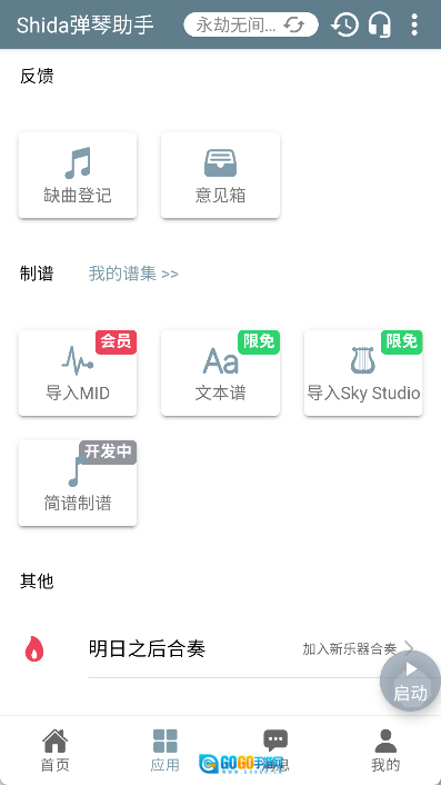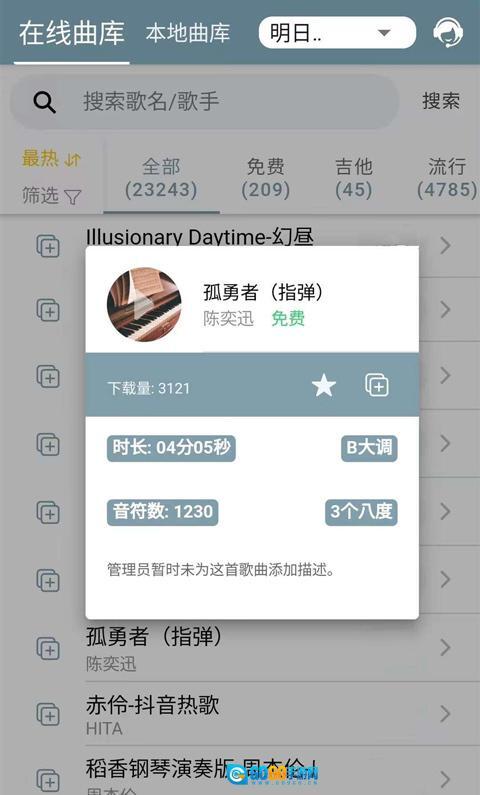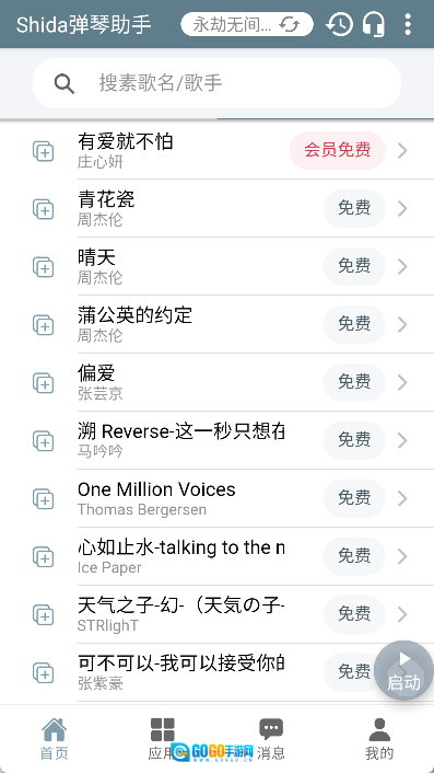 软件启动后,无需繁琐的注册步骤,就能免费演奏400多首歌曲。