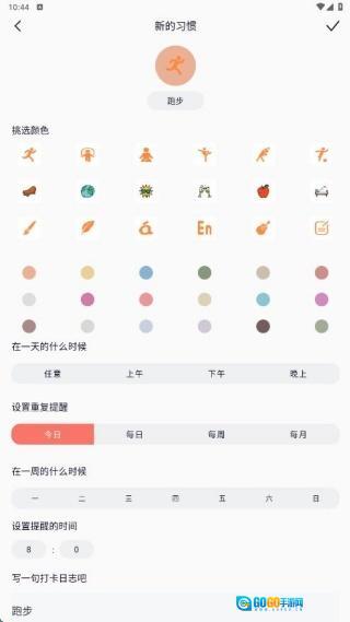 2、进入运动打卡页面后,可结合自身的运动安排与学习计划,来设定习惯养成方面的目标。