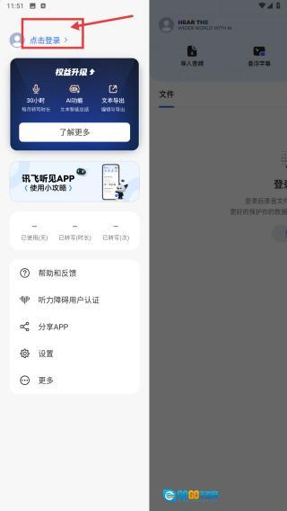 1、打开讯飞类应用,点击左上角的个人中心图标,展开功能菜单。