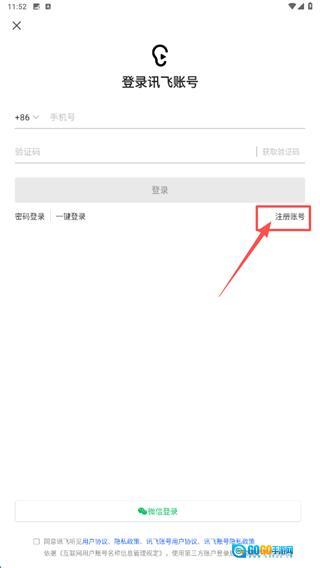 3、在登录界面,点击注册账号选项,进入注册讯飞账号页面。