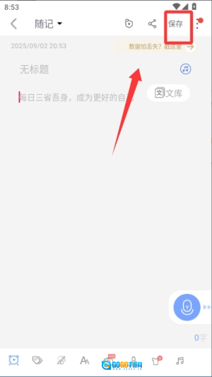 3、编辑完成后保存笔记,之后可以在主页查看或搜索历史记录,便于随时回顾内容。