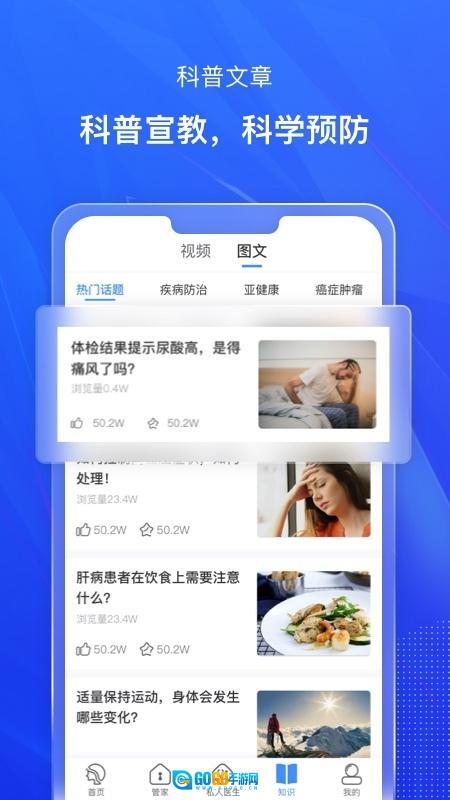1、知疾平台汇聚了涵盖疾病预防、健康饮食、运动健身等多领域的健康知识内容,助力用户养成科学合理的生活习惯。