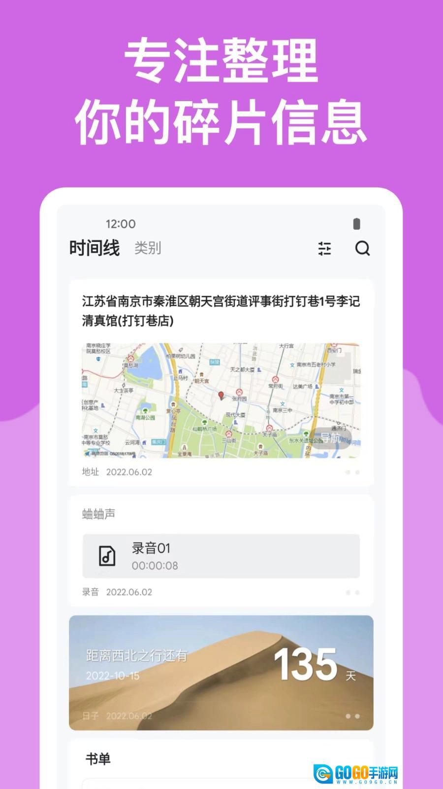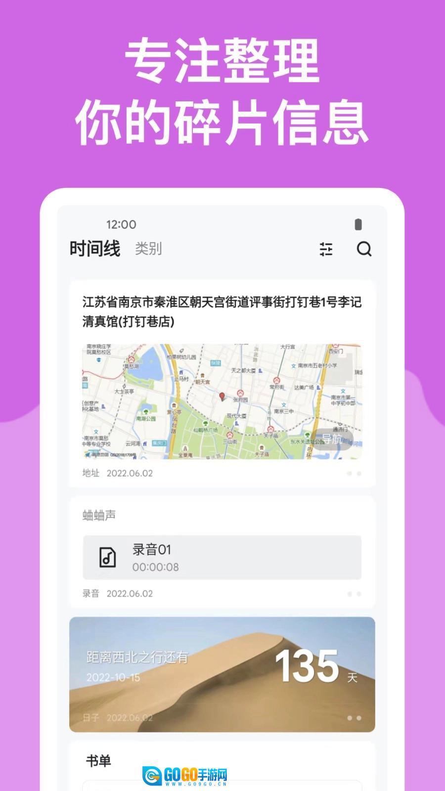 1.在此记录你所有的碎片化信息,涵盖多达十三种类别的记事,集成了十分丰富的功能