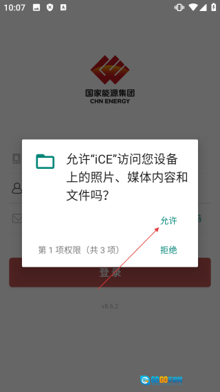 1、在国家能源集团权限请求界面,点击【允许】按钮,即可进入登录界面。