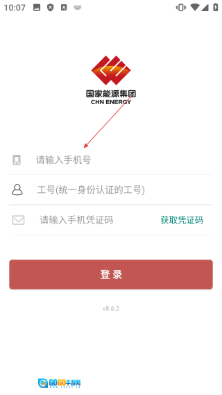 3、进入登录界面后,先输入【工号】,再点击【获取凭证码】按钮,随后获取手机上收到的凭证码并填写至对应位置。