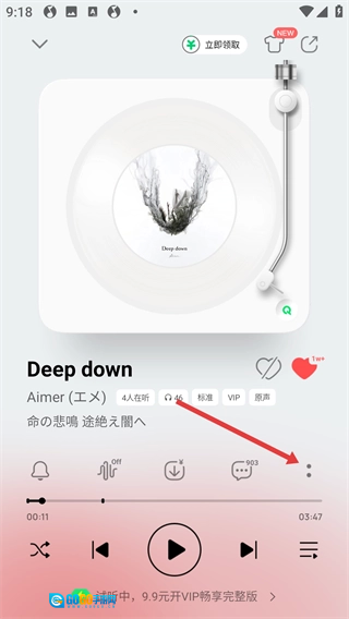 2、在【Deep-down】的播放界面,点击右侧的两点按钮,展开更多操作选项。