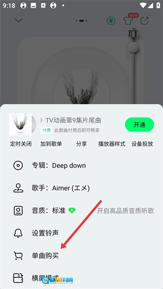 3、在展开的选项中,点击【单曲购买】,即可进入相应的购买页面。