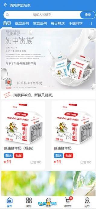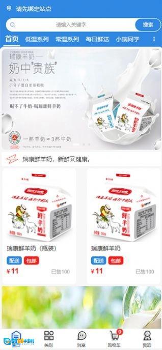 1、安装完成后,在首页就能看到鲜奶不同系列的商品展示,方便进行选购。