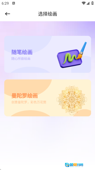 3、绘画页面主要设有随笔绘画与曼陀罗绘画这两种形式。