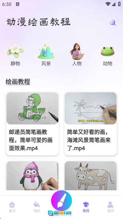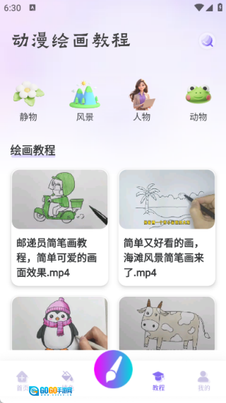 4、教程内容主要涵盖了静物、风景、人物和动物这四大类绘画教学内容。