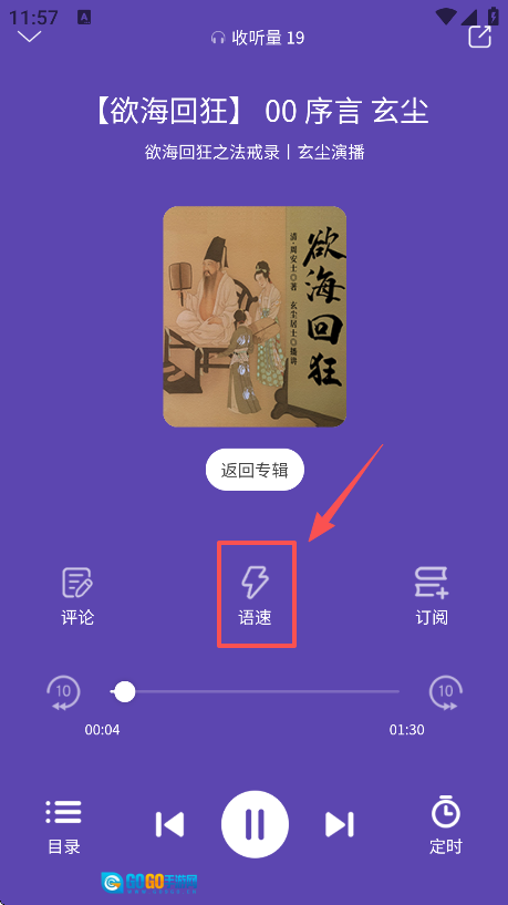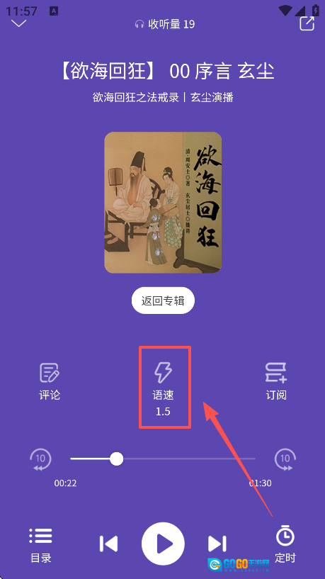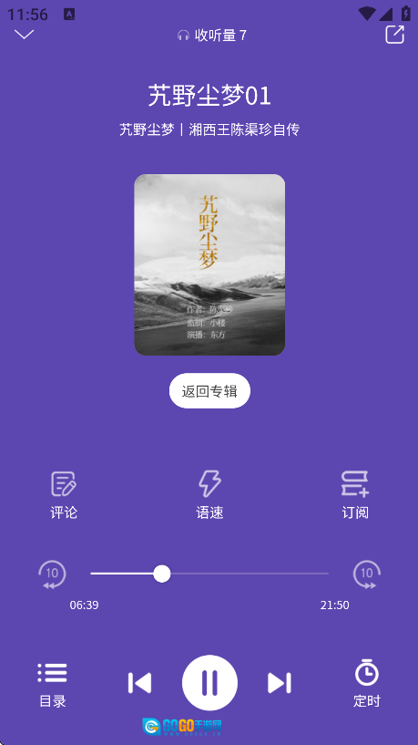 1、选择喜欢的有声书进入到播放页面